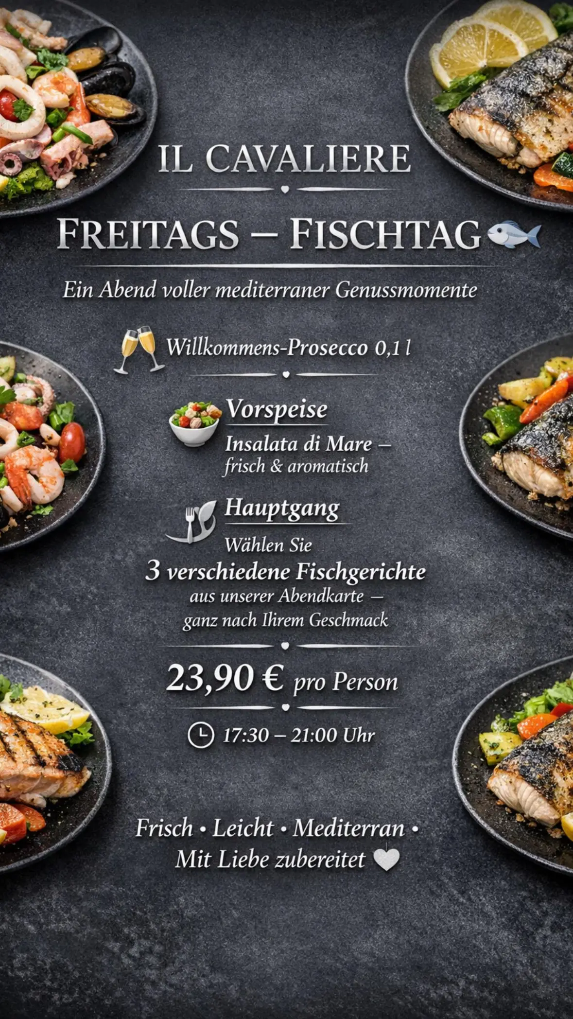Auch am Abend bieten wir täglich wechselnde Angebote und besondere Empfehlungen an.